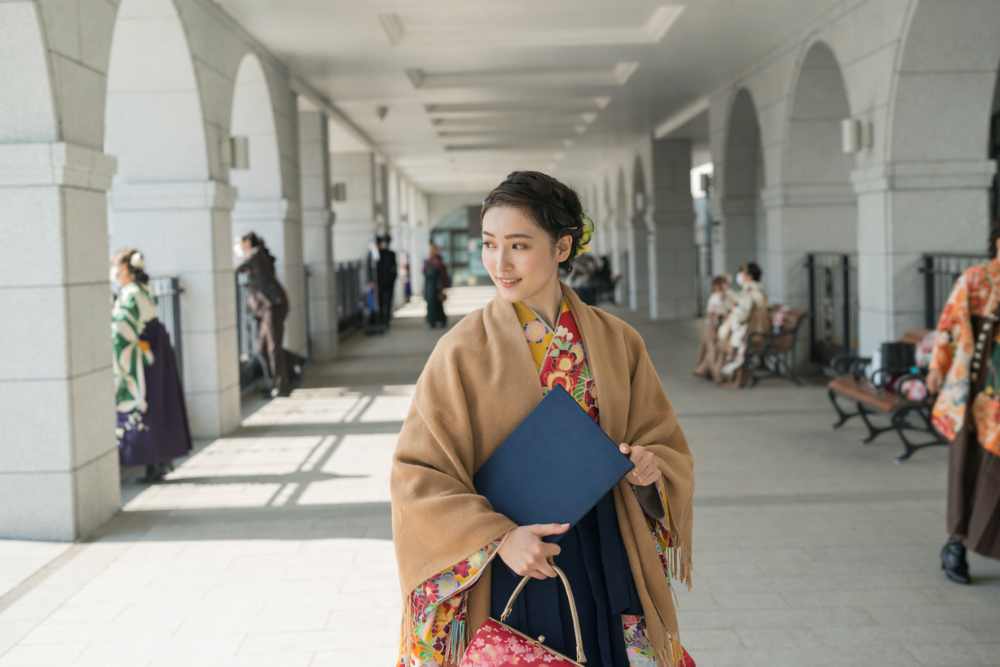でも、せっかくの袴姿に合わない防寒具は避けたいし、式の場にふさわしいマナーや所作にも気をつけたいところ。