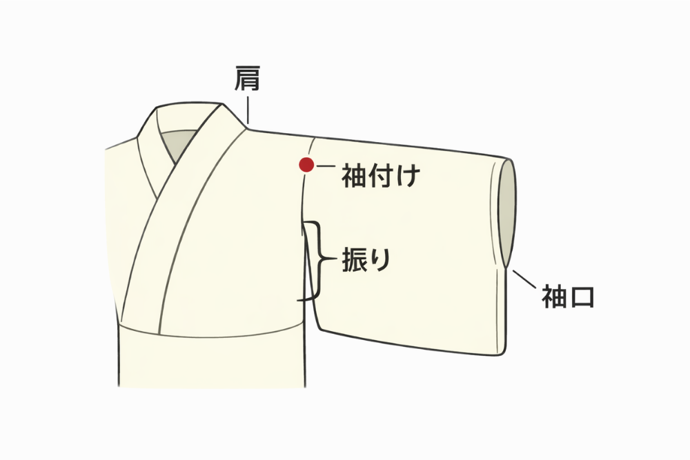 また、袖付けは単なる部位の名前ではなく、着物の寸法を理解するうえでも大切な基準になります。