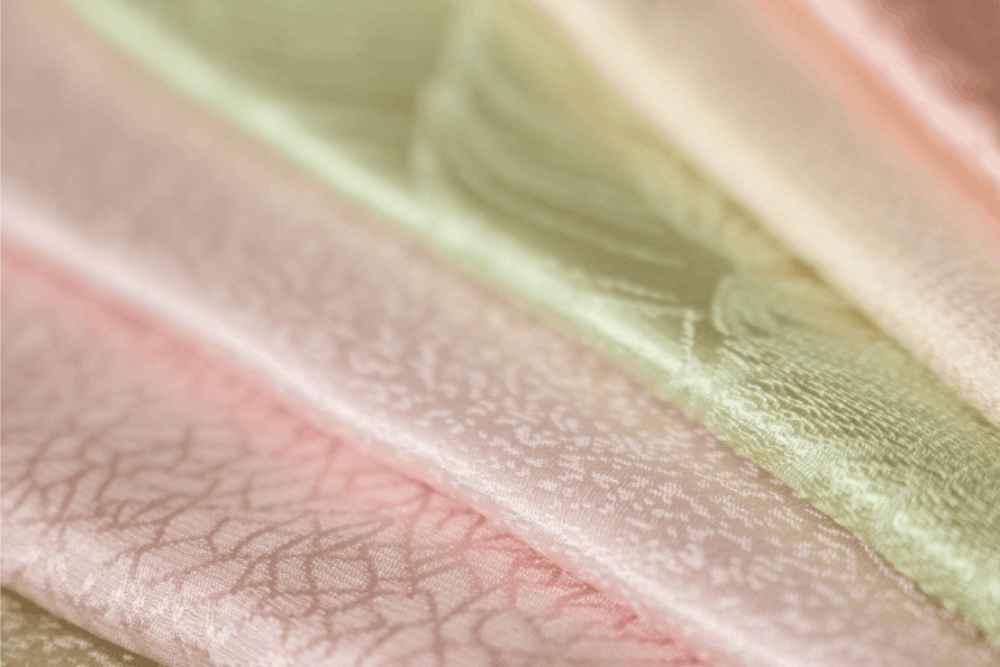 帯揚げの素材で代表的なのは、ちりめん、リンズ、絞り、そして夏向きの絽です。
