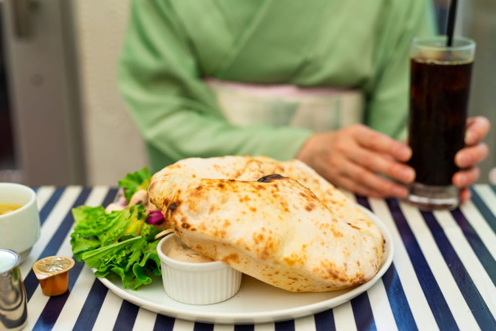 一方で、カフェや気軽なランチ、街歩きなどには半幅帯がよく合います。